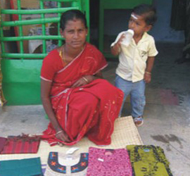 Fifteen years ago, Esther began to work as coolie labor three times a week, making 100 rupees a day. Ten years ago, her husband died. She lives with her daughter, Helen, and two grandchildren